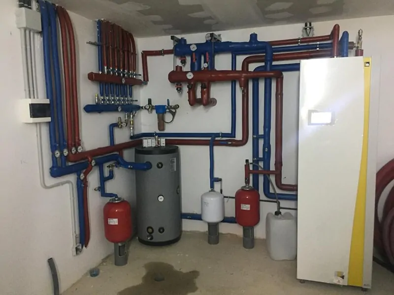Moradias unifamiliares com 3 pisos aquecidos por piso radiante com espaço mínimo como casa de máquinas